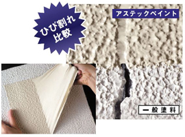 耐久性は今までの塗料とは比較にならないほど高く、また塗膜の伸縮率が660%と世界最高水準で外壁のひび割れに伸縮する塗膜が追随し、表面のひびを防ぎます。