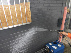 | 高圧洗浄で汚れを綺麗に落とします。 | 割れてしまっていたコーキングを処理します。 | 下地を塗り、フッ素塗料を重ねます。 |