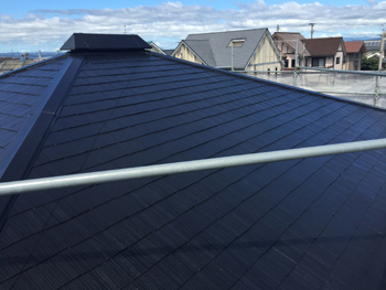 | 屋根は黒に仕上げ、外壁とのコントラストがポイントです。 | 屋根を近くで見ても傷一つありません。 |