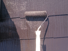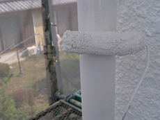 | 外壁・屋根ともに綺麗に洗浄します。 | 下地を塗り、上塗りを丁寧に行っていきます。 | 排水管部分も塗り直します。 |