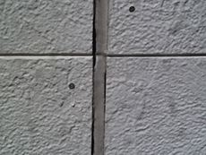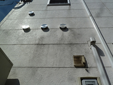 | シーリングも痩せ、壁と壁の間に隙間ができていました。 | 玄関へと続く階段の手すりは塗装が剥げて下地が見えていました。 | 屋根にも全体的に汚れが見られます。 |