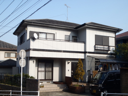 | 中古物件購入後の全面塗装をさせていただきました。カラーシミュレーションからお気に入りの色合いを見つけていただきました。 (外壁塗装)下塗り:ホルダーZ 中塗り、上塗り:セラミシリコン (屋根塗装)中塗り、上塗り:カスタムシリコン |