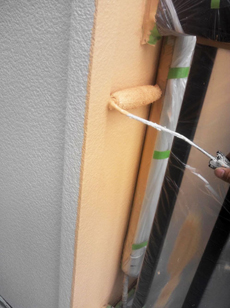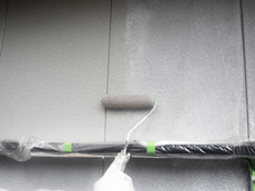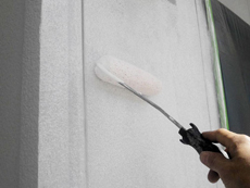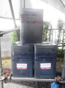 | 壁の下塗りに使用する塗料です。 | 外壁の下塗り中です。 | 外壁の中塗り中です。 |